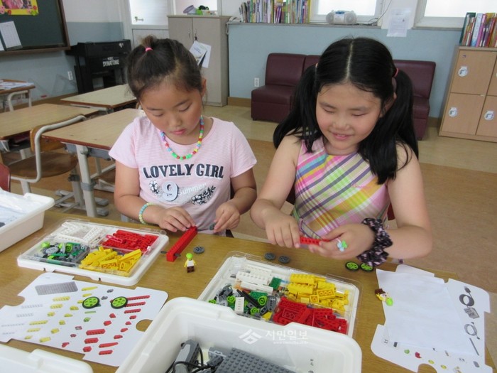 전남 담양군 만덕초등학교가 최근 전교생들 대상으로 '교내 소프트웨어 경진대회'를 실시했다. 사진은 블록으로 자동차 만들기 대회에 참여한 학생들의 모습.(사진제공=전라남도교육청)