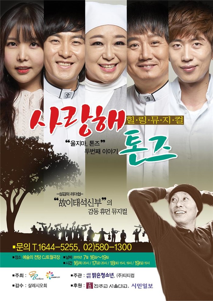 (사)밝은 청소년, (주)티티컴이 주관하고 <시민일보>와 천주교서울대교구가 후원하는 뮤지컬 ‘사랑해 톤즈’는 지난 2012년 성균관대학교 새천년홀에서 공연된 ‘울지마 톤즈’를 바탕으로 전체적인 스토리라인이 각색되면서 완전히 새롭게 업그레이드 된 작품이다.