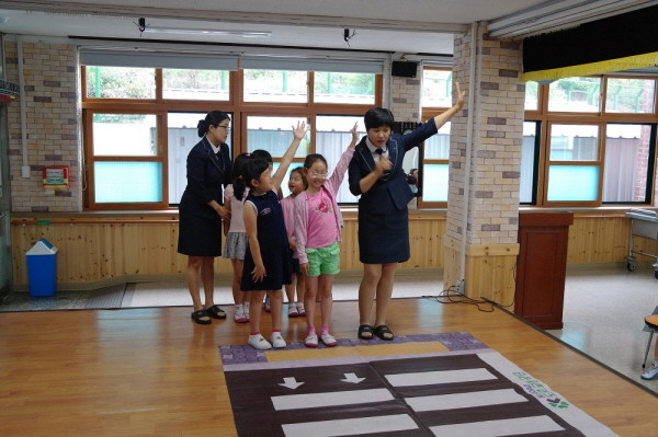 경북 구미시 신기초등학교가 1일 전교생을 대상으로 '어린이 생활 안전 교육'을 실시했다. 사진은 교육에 참여한 학생들이 교사의 지도에 따라 횡단보도 건너기 방법을 배우고 있는 모습.(사진제공=구미교육지원청)