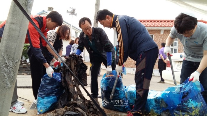 경기 안산시 단원구 대부동 지역주민들과 공무원들은 최근 깨끗하고 좋은 마을을 만들기 위한 '환경정화의 날'을 운영했다. 사진은 청소에 참여한 주민들과 공무원들이 생활폐기물을 수거하고 있는 모습.(사진제공=안산시청)