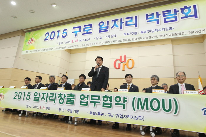 | ▲이성 구청장은 민선6기 임기내 매년 1만개 이상의 일자리를 창출하는 것을 목표로 산·관·학이 함께하는 '일자리 창출을 위한 업무협약'을 체결한 바 있다. | ||