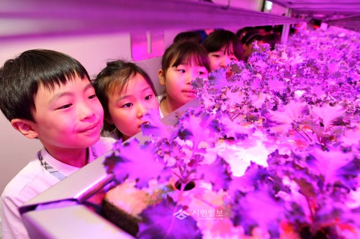 인천 동구가 최근 송림아뜨렛길 다목적실에서 '2015년 기후학교' 프로그램을 진행했다. 사진은 이날 프로그램에 참석한 어린이들이 기후변화에 따른 먹거리 체험의 일환으로 채소가 자라는 모습을 관찰 중인 모습.(사진제공=동구청)