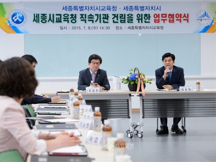 지난 8일 세종시 조치원을 시의 교육연구클러스터로 만들기 위해 개최한 ‘세종시교육청 직속기관 건립을 위한 업무협약’에서 이춘희 시장이 관계자들과 협력방안에 대해 이야기하고 있다.(사진제공=세종시)