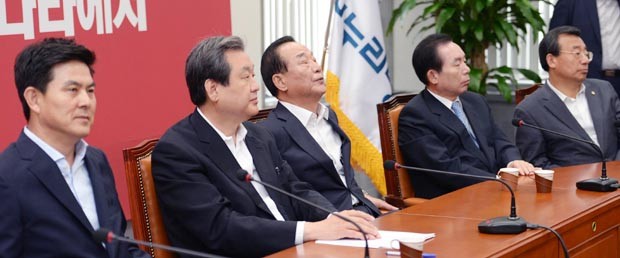 9일 오전 서울 여의도 국회 새누리당 대표실에서 열린 최고위원회의에서 김무성 대표와 최고위원들이 굳은 표정을 하고 있다.
