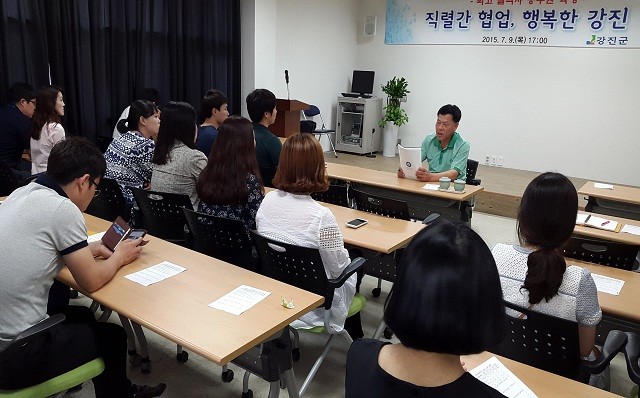 지난 9일 시문학파기념관에서 멘토로 나선 강진군 친환경농업과 조상언 과장은“정부가 개방, 공유, 소통, 협력이라는 4대 가치를 중심으로 투명하고 유능한 서비스 정부를 새로운 패러다임으로 제시한 것처럼 부서‧직렬 간 소통하고 협력함으로써 주민 모두가 행복한 지역을 만들어 가는 것이 우리 공직자의 존재의 이유”라며 공직자의 역할과 자세가 필요하다고 당부했다.