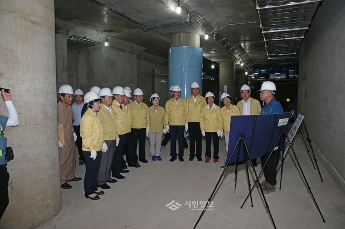 최근 서울 종로구의회 제252회 임시회 기간중 우이신설경전철 신설동역 공사현장을 방문한 의원들이 시공사·감리회사 관계자로부터 공사진행 상황을 보고받고 있다.