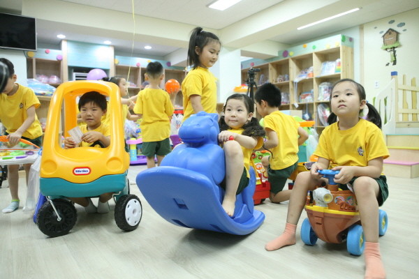 서울 강동구가 최근 (주)신세계, 길동복조리시장과 협약을 통해 길동 복조리시장내 희망장난감 도서관을 조성하고 개관식을 열었다. 사진은 장난감도서관에서 어린이들이 즐겁게 놀고 있는 모습.(사진제공=강동구청)