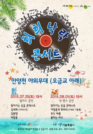오는 8월1일 열리는 공연은 록밴드 음악을 테마로 진행된다. ‘바람과 구름’, ‘그대로 그렇게’ 등의 히트곡을 갖고 있는 ‘이명훈과 휘버스’, 홍대클럽 뮤지션인 ‘불타는 버스’, 6인조 혼성 그룹 ‘무드 싸롱’ 등이 역동적인 무대를 선보인다.