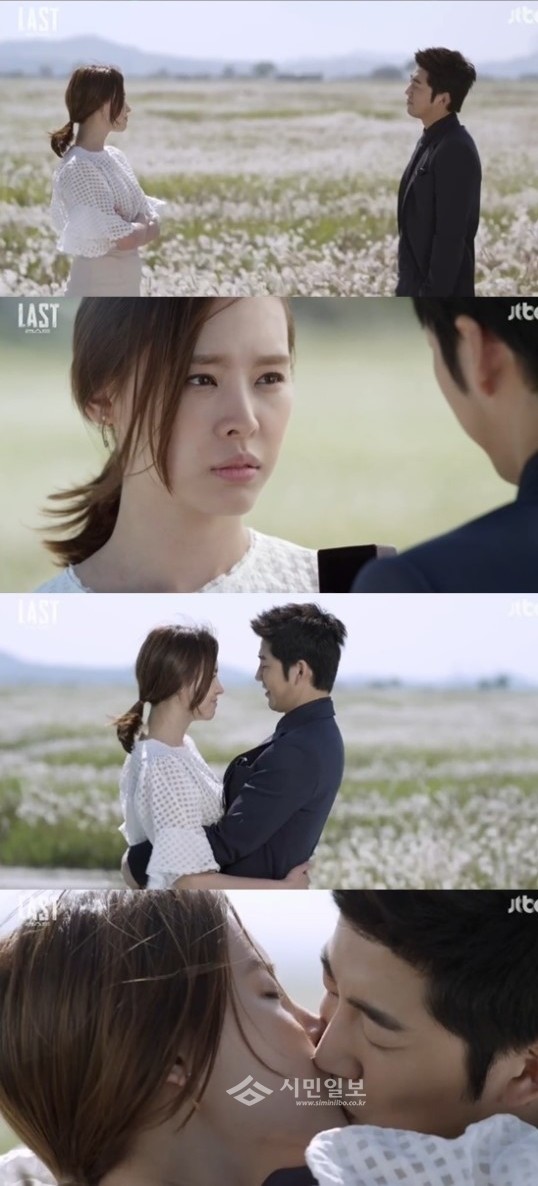 아름다운 들판을 배경으로 선 두 사람은 키스를 나누며 행복한 장면을 연출한다.