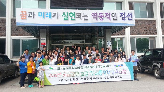 서울 은평구 응암2동주민자치위원회는 최근 자매결연지인 강원도 정선군 임계면을 방문해 자치사업 우수사례를 공유하고 지역 문화와 먹거리를 체험하는 등 상호간의 우의를 다졌다. 사진은 행사에 참여한 관계자들이 기념사진을 찍은 모습.(사진제공=은평구청)