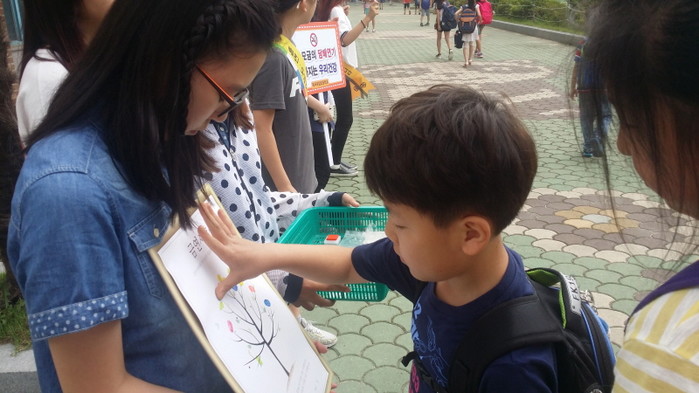 전남 목포시 옥암초등학교가 최근 청소년들에게 담배의 유해성을 알리고자 '금연 캠페인' 행사를 개최했다. 사진은 금연을 약속하는 '금연 나무 만들기' 활동에 참여한 학생이 종이에 손도장을 찍고 있는 모습.(사진제공=전라남도교육청)