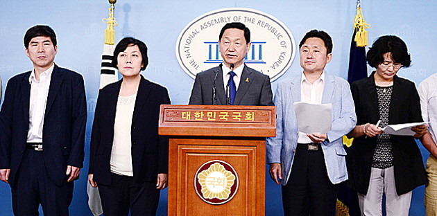 26일 서울 여의도 국회 정론관에서 새정치민주연합 김상곤 혁신위원장과 혁신위원들이 5차 혁신안을 발표하고 있다.