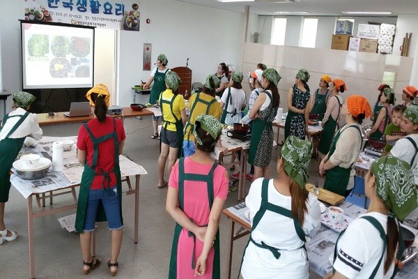 | ▲ 다문화 여성들에게 한국 문화 이해 및 가사활동 등 도움을 주기 위해 한식 요리 강좌에 나선 영암군다문화가족지원센터 | ||
