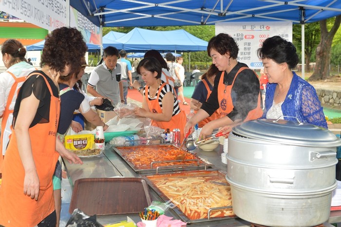 최근 경기 동두천 송지로타리클럽이 송내동 시민공원에서 실시한 '청소년 장학기금 마련 음악 바자회'에서 판매할 음식을 만들기 위해 회원들이 분주하게 움직이고 있다.(사진제공=동두천시)