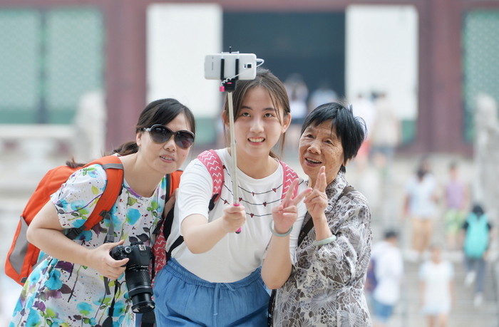 경복궁서 셀카 찍는 외국인 관광객