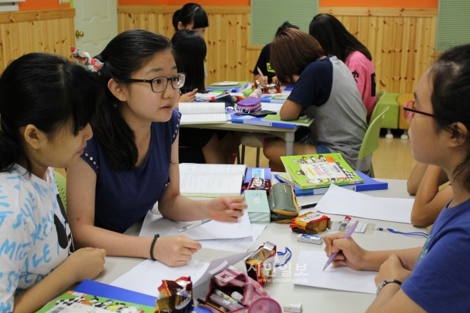 인천동부교육지원청이 최근 지역내 초등학교 6학년 학생들을 대상으로 '2015 독서 여름교실'을 실시했다. 사진은 독서교실에 참여한 학생들이 책을 읽고 토론하고 있는 모습.(사진제공=인천시교육청)