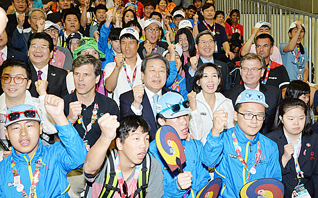 미국을 방문 중인 새누리당 김무성 대표는 1일 오전(현지시각) 스페셜 올림픽이 열린 LA 컨벤션센터를 방문, 대한민국 선수단을 응원하고 있다.