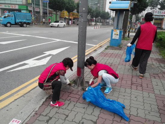 경기 의정부시 호원1동 통장협의회와 직원 일동은 최근 '제26회 경기도 생활체육대축전'의 성공적 개최를 염원하며 '코스모스 향기 나는 호원1동 만들기 행사'를 진행했다. 사진은 참여자들이 도로변 쓰레기를 수거하고 있는 모습.(사진제공=의정부시청)