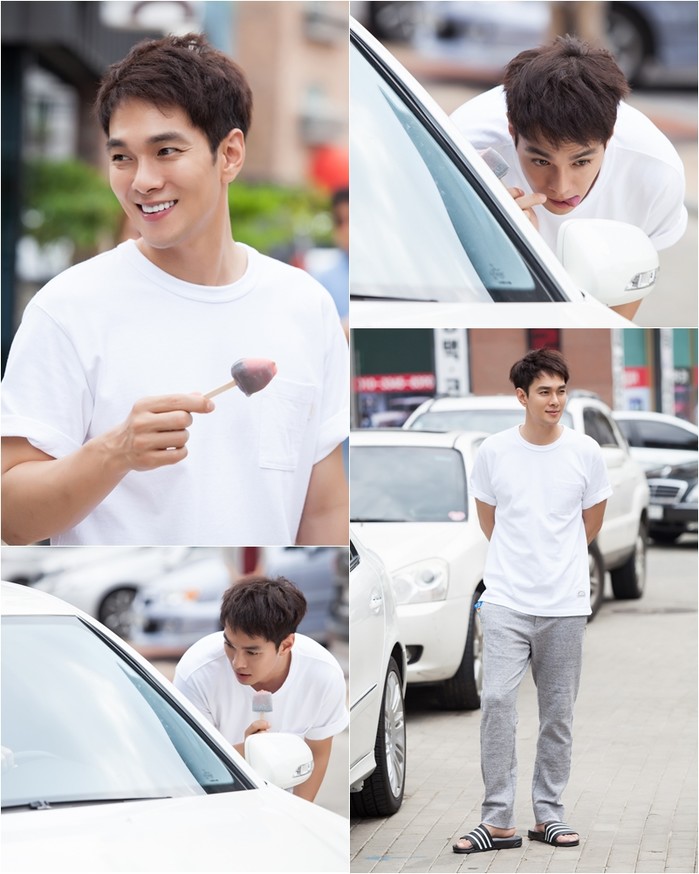 공개된 사진 속 이규한은 마치 방금 일어난 듯 부스스한 머리에 삼선 슬리퍼를 신고 동네를 어슬렁거리며 돌아다니고 있는 모습이다. 특히 주차된 차의 사이드 미러를 보며 눈곱을 떼거나 세상 걱정 없이 해맑은 미소가 동네 백수를 연상케 해 웃음을 자아내게 한다.