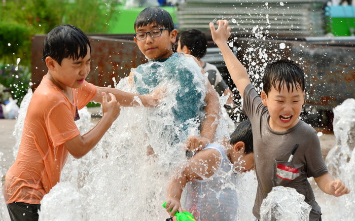 서울시청 광장 분수대에서 물놀이 하는 아이들