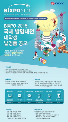 이번 공모는 오는 10월12일부터 사흘간 개최되는 빛가람 전력기술엑스포(BIXPO 2015)의 주요 프로그램 중의 하나인 ‘국제 발명대전’에서 전시될 대학생 발명품을 공모하는 것으로, 한전은 이번 공모를 통해 출품된 발명품 중에서 사전 서류심사를 통해 총 10점의 발명품을 선정하여 전시할 예정이다.