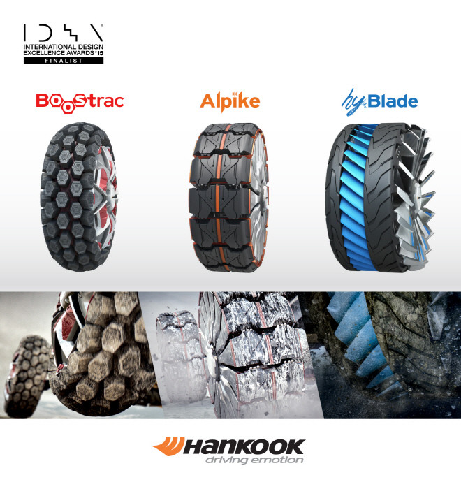 이번 수상작인 컨셉 타이어 3종은 혁신적인 미래형 타이어 디자인을 발굴하는 ‘한국타이어 디자인 이노베이션 2014’를 통해 독일 포츠하임 대학과의 공동 연구로 탄생했으며, 지구 온난화로 인해 초래될 수 있는 심각한 기후변화 상황에서 최상의 성능을 발휘할 수 있도록 설계됐다.