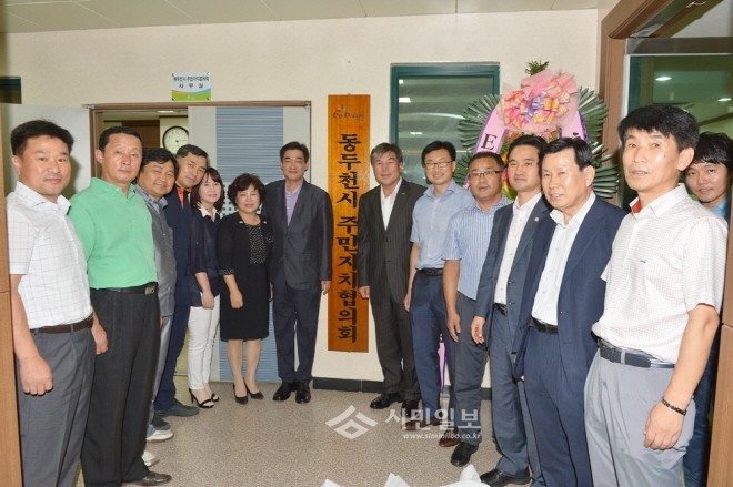 경기 동두천시 주민자치협의회는 최근 상패동 주민센터 2층에서 사무실 개소식을 실시했다. 사진은 개소식에 참석한 관계자들이 현판식 후 기념촬영을 하고 있는 모습.(사진제공=동두천시)