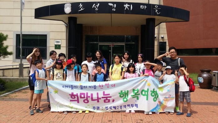 서울 은평구 불광2동 복지두레위원회는 최근 1박2일 일정으로 지역내 초등학생과 복지두레위원 등 24명이 참여한 '제3회 희망나눔 행복여행'을 진행했다. 사진은 이번 여행 장소인 경기도 연천군 청산면 초성 김치마을을 방문한 학생들의 모습.(사진제공=은평구청)