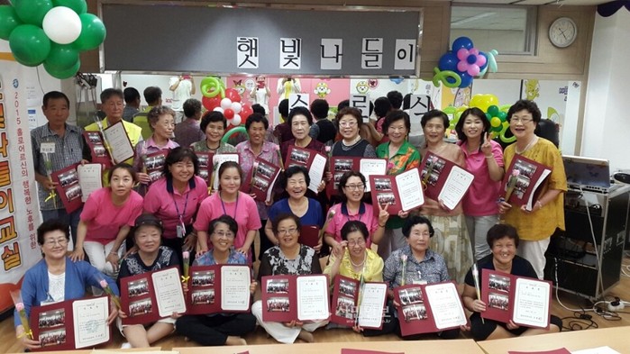 경기 양주시 보건소는 17일 보건소 2층 나누리방에서 홀몸노인 25명이 참석한 가운데 이들의 운동요법·음악요법·작업요법 등 통합적인 건강관리사업을 위해 운영한 ‘햇빛나들이교실 프로그램' 수료식을 열었다. 사진은 수료식에 참가한 노인들의 모습.(사진제공=양주시청)