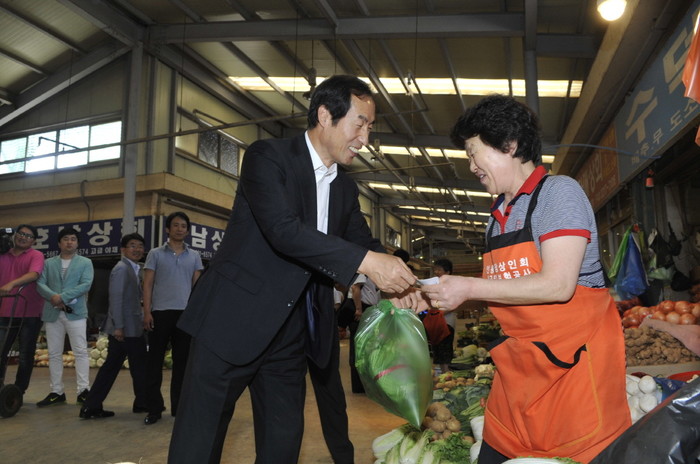 구청 직원들은 매월 마지막주 목요일에 국별로 정한 시장을 방문하고 전통시장 온누리상품권으로 농수산물과 생활용품 등을 구입한다.