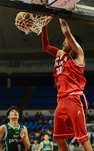 지난 대회 우승팀이자 강력한 우승 후보인 고려대는 NBA 신인 드래프트에서 부름을 받지 못하고 복귀한 센터 이종현과 국가대표 예비 엔트리에 뽑힌 포워드 강상재와 문성곤, 주장 이동엽 등 최강 전력으로 경기에 임했다.