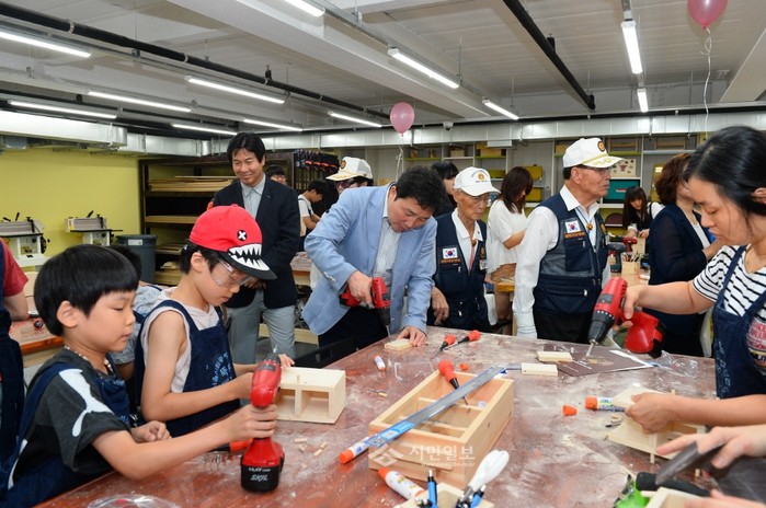 이날 개소식에서 서 의장은 드릴을 직접 사용해 책꽂이를 만들어 보는 등 청소년의 입장에서 체험활동에 동참했다.