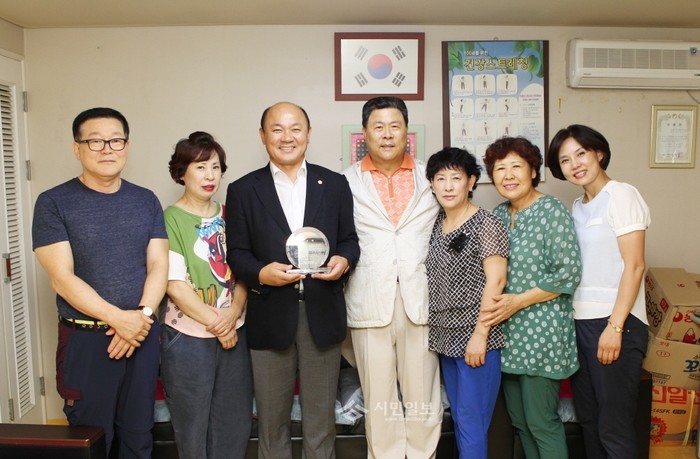 [시민일보=이대우 기자]최근 황인구 서울 강동구의원이 성내동 대림e-편한세상 입주민들로부터 살기좋은 아파트 조성에 기여한 공로를 인정받아 감사패를 수여받았다.