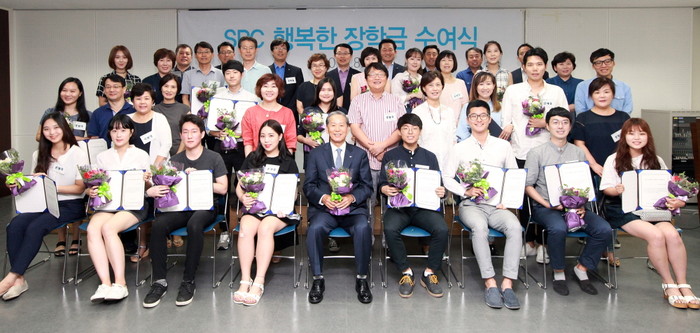‘SPC 가맹점주 자녀 행복한 장학금’은 파리바게뜨, 파스쿠찌, 배스킨라빈스, 던킨도너츠, 빚은 등 SPC그룹 계열 가맹점을 1년 이상 운영한 가맹점주의 대학생 자녀 중 학업성적이 우수한 학생들을 매 학기 선발해 장학금 100만원씩을 지원하는 제도로 이번 학기에는 총 484명을 선발해 약 5억원의 장학금을 전달했다.