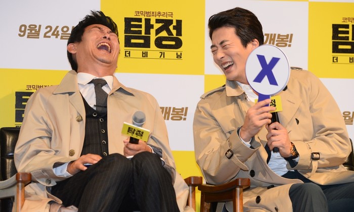 24일 서울 강남구 압구정 CGV에서 열린 영화 '탐정, 더 비기닝' 제작보고회에는 배우 성동일과 권상우 등이 참석했다.