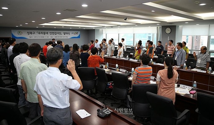 25일 서울 성북구는 지역주민이나 지역 시민단체를 대상으로 '우리동네 안전 감시단'을 모집해 총 38명을 선발하고 구청 미래기획실에서 발대식을 개최했다. (사진제공=성북구청)