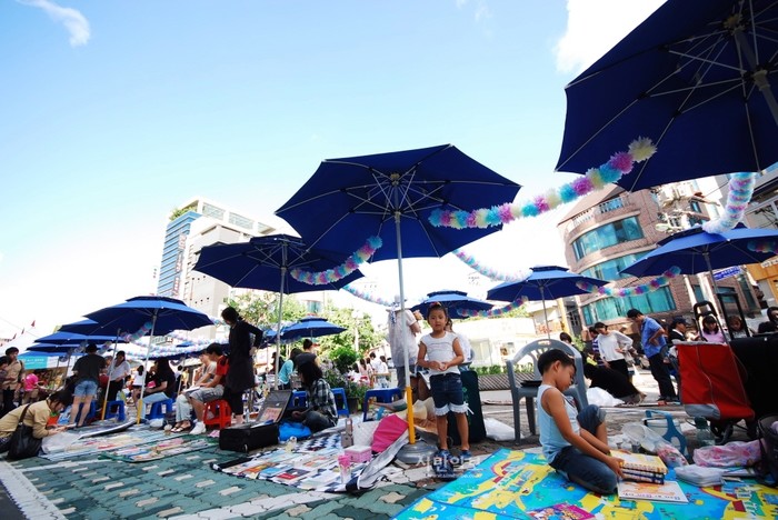 | ▲ 홍대 일대에서 펼쳐진 '와우북 페스티벌'의 프로그램 가운데 하나인 벼룩시장을 찾은 시민들이 책을 사고 파는 모습. 서울 마포구는 홍대 일대 85개 사회적경제조직과 손잡고 마을기업 (가)홍대앞 문화관광여행사를 설립해 다양한 문화예술 행사 기반 관광콘텐츠 개발을 추진하려고 한다. | ||
