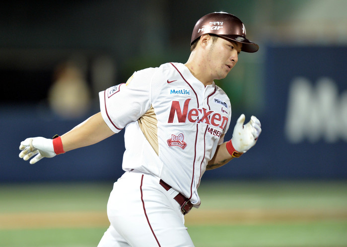 박병호는 26일 목동구장에서 열린 ‘2015 타이어뱅크 KBO 리그’ kt 위즈와의 경기에서 4회말 2사 1,3루에서 롯데 투수 정대현의 공을 공략해 좌중간 담장을 넘기는 장외 스리런 홈런을 기록했다..