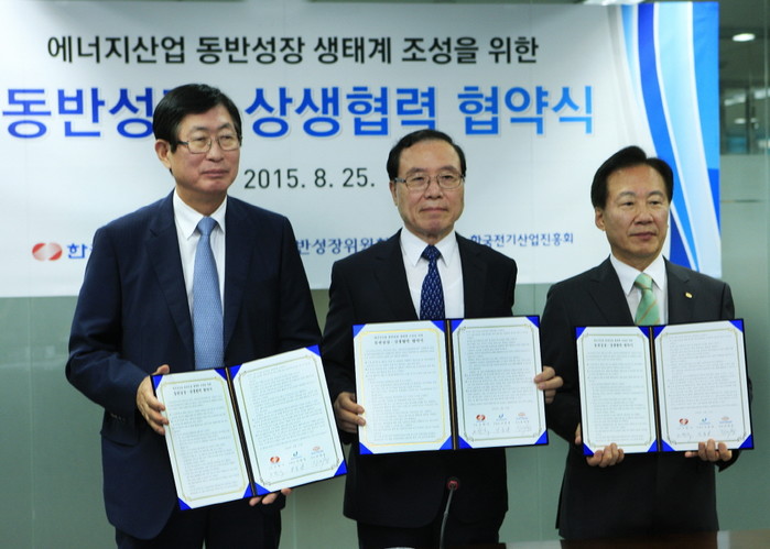 한국전력(사장 조환익)은 지난 25일 오전 11시 동반성장위원회에서 동반성장위원회(위원장 안충영) 및 한국전기산업진흥회(회장 장세창)와 에너지산업 동반성장 생태계 조성을 위한 상생협약을 체결했다.