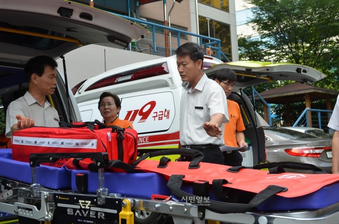 서울 강남소방서는 최근 신속한 구급활동을 위해 신규 특수 구급차 2대를 배치했다. 사진은 새로 배치된 구급차가 갖춘 의료장비를 살펴보고 있는 소방서 관계자들의 모습.(사진제공=강남소방서)