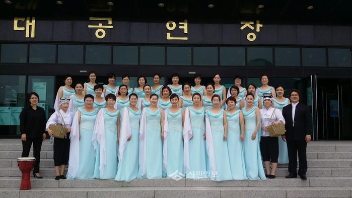 서울 중랑구립여성합창단은 최근 태백문화예술회관에서 열린 '제33회 태백전국합창경연대회'에서 장려상을 받았다. 사진은 대공연장 앞에서 구립여성합창단이 기념사진을 찍은 모습.(사진제공=중랑구청)