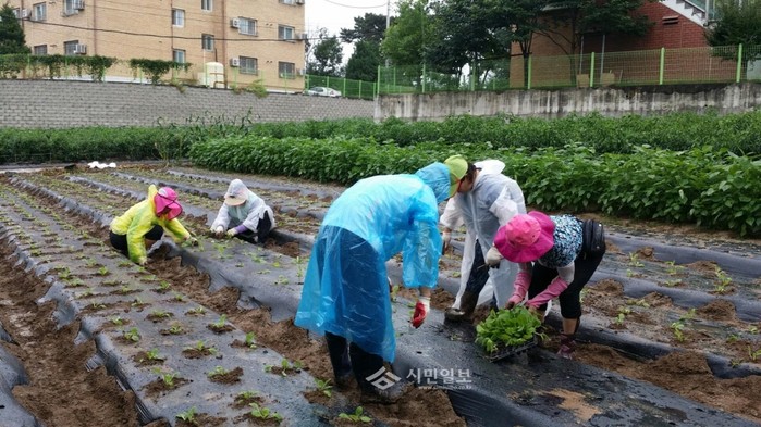경기 이천시 증포동새마을협의회 소속 지도자들이 연례 행사인 '사랑愛 김치' 김장에 사용될 배추 2000포기, 무 1500개, 갓, 쪽파 등의 종자를 텃밭에 파종하고 있다. (사진제공=이천시청)