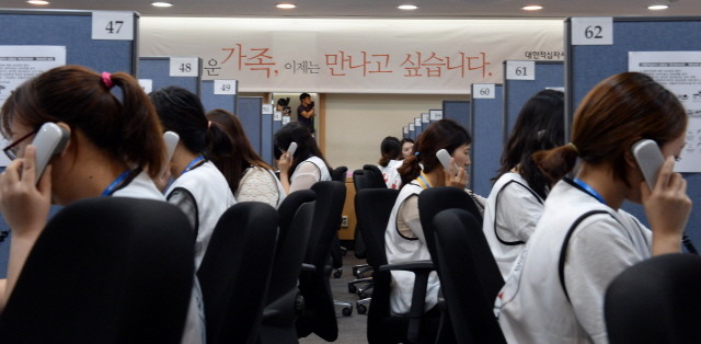 대한적십자사가 이산가족 6만여명의 명단 교환을 위한 준비작업에 착수한 1일 오전 서울 중구 대한적십자사에서 열린 남북이산가족 생사확인 추진센터에서 상담원들이 신청자들의 생사확인 전화를 하고 있다.