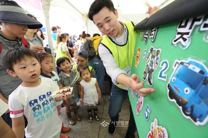 금천구 다문화가족지원센터와 건강가정지원센터는 지난 5일 오후 1시 구청 광장에서 다문화가족, 내·외국인 등이 참여하는 '제5회 금나래 글로벌 페스티벌'을 개최했다. 사진은 페스티벌에서 어린이들이 애니메이션 캐릭터를 이용한 놀이체험을 하고 있는 모습.(사진제공=금천구청)