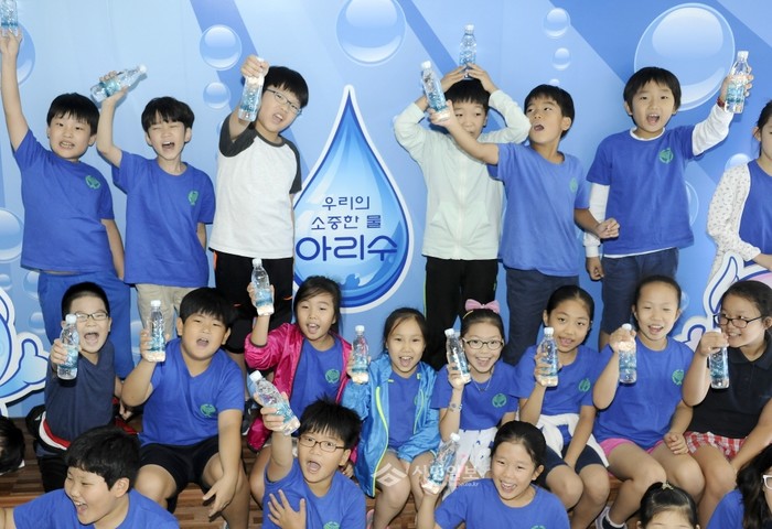 서울 광진구는 지난 8일 '광진탐방교실'의 일환으로, 동의초등학교 3학년 학생들을 대상으로 ‘구의아리수정수센터’에서 아리수 역사와 정수과정을 교육하고 아리수 우산과 물피리를 만드는 체험을 진행했다. 사진은 아리수 포토존에서 학생들이 단체사진을 찍은 모습.(사진제공=광진구청)