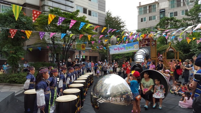도봉구 쌍문e편한세상아파트 공동체 활성화 단체 '어울림'이 최근 구청, 쌍문1동 등의 후원을 받아 주민참여와 화합을 위한 마을잔치 '얘들아 놀자'를 개최했다. 사진은 공연을 관람 중인 주민들의 모습. (사진제공=도봉구청)