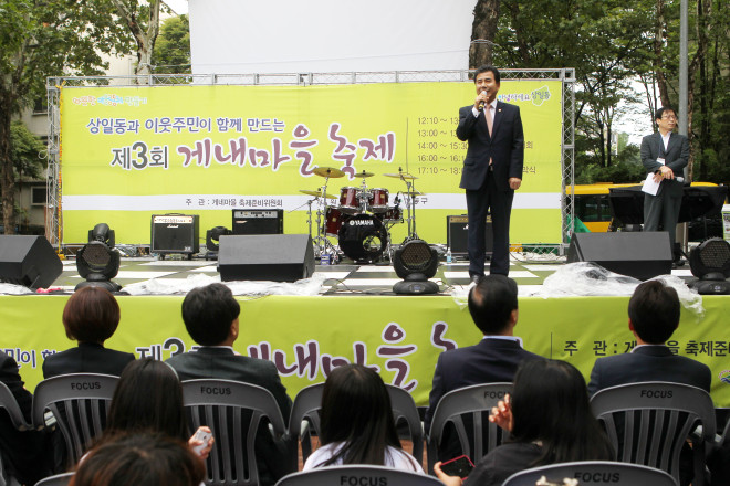 성임제 의장은 “게내마을 축제가 3회째 성공적으로 개최될 수 있도록 행사준비에 수고해 주신 상일동 심완보 주민자치위원장님과 나덕찬 통장협의회장님, 박성식 열린사회강동송파시민연대 공동대표님을 비롯한 관계자 여러분께 감사드리며, 주민스스로 프로그램을 기획하고 만들어가는 주민주도형축제인 게내축제가 회를 거듭할수록 주민들에게 더 큰기쁨을 주고, 더 큰사랑을 받는 축제가 되기를 바란다”고 축사했다.