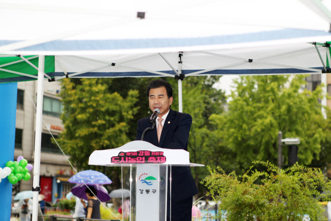 성임제 의장은 “올해로 다섯번 째를 맞이한 ‘강동구 친환경 도시농업축제’의 개최를 축하드리며, 행사준비를 위해 수고해 주신 도시농업 관련 단체와 도시농부 여러분들 그리고 참여해주신 모든 분들께 감사드리고, 이곳 도시농업 축제에 참여하면서 자연이 주는 아름다운 선물과 수확의 기쁨을 맛보시기 바란다”고 축사했다.