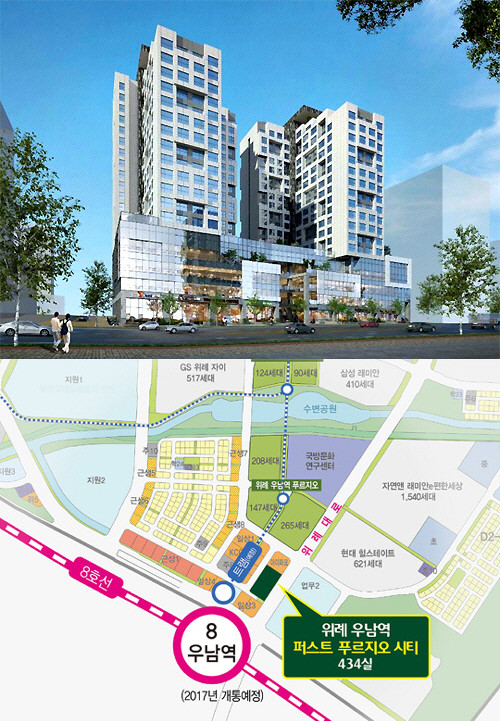 위례 우남역 퍼스트 푸르지오 시티는 아시아신탁이 시행하고 대우건설이 시공하는 우남역세권 오피스텔·상가이다.