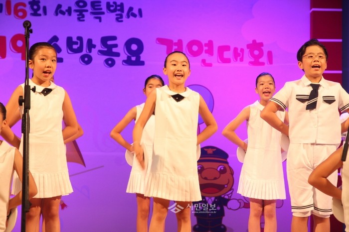 최근 서울 광운대학교 동해문화예술관 대극장에서 열린 '제16회 서울119소방동요대회'에서 동작소방서 대표로 참가한 서울강남초등학교와 구립로야어린이집이 각각 대상과 우수상을 받았다. 사진은 이날 무대에 올라 생활속 안전수칙을 노랫말로 만든 노래를 부르고 있는 강남초등학교 어린이들의 모습.(사진제공=동작소방서)